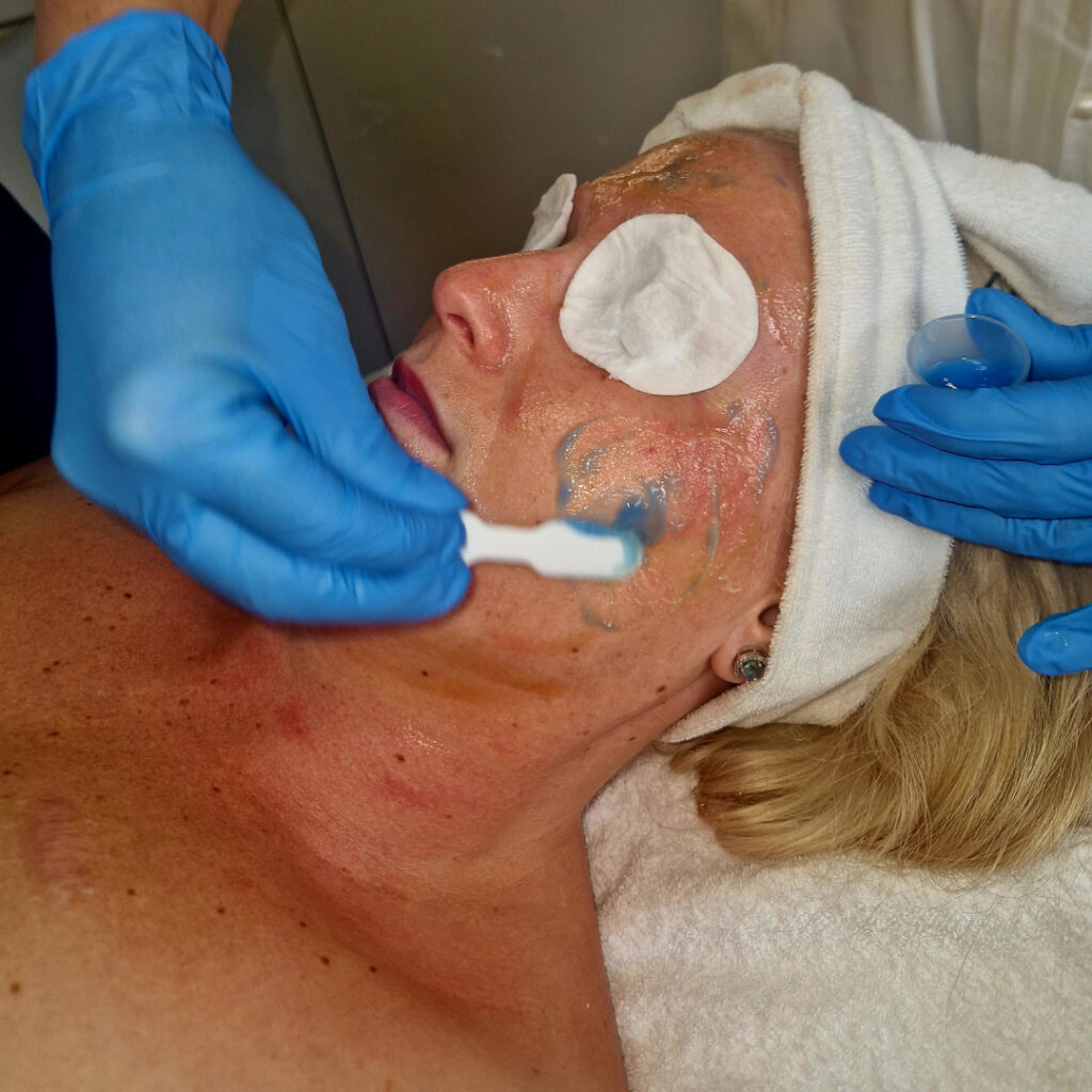 A kezelés során bőr előkészítését követően vékony rétegben felvisszük a kémiai anyagot, majd un. neutralizáló, semlegesítő géllel közömbösítjük azt. A hámlasztás nem jár fájdalommal, enyhe égető, csípő érzés jelentkezhet, illetve enyhe vörösség, mely pár óra múlva el fog múlni. A hámlasztás csupán kb 45 percet vesz igénybe. Azt követően a termékhez tartozó, a bőrtípusnak megfelelő krémmel és egy 50 SPF fényvédővel kenjük be a bőrt, melyeket otthon is használni kell.